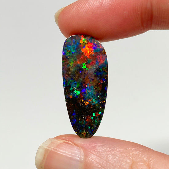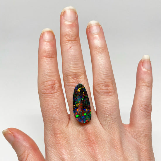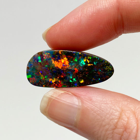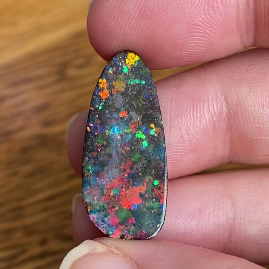 Australian boulder opals of this grade are extremely rare. They score very high in most valuation factors, including, brilliance, colour, pattern and play-of-colour. They often also have a black or very dark body tone.