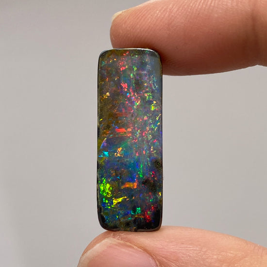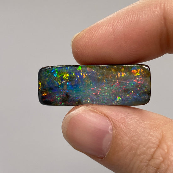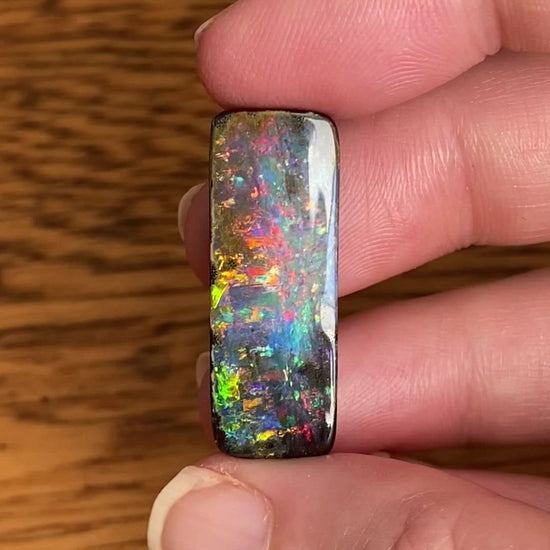 Australian boulder opals of this grade are extremely rare. They score very high in most valuation factors, including, brilliance, colour, pattern and play-of-colour. They often also have a black or very dark body tone.