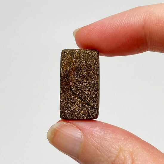 A wonderfully bright blue and green rectangle boulder opal that is quite rare to come across.