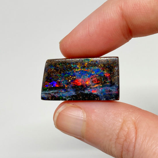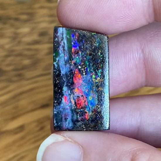 A large geometric boulder opal with lots of different colours including some great brilliant flashes of red.
