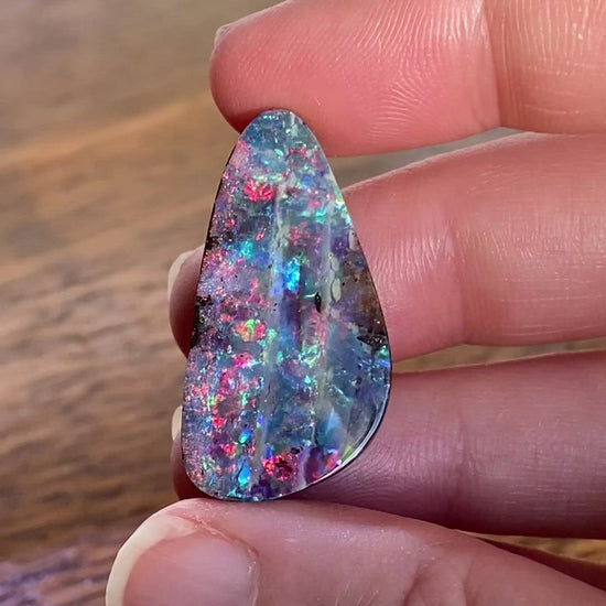 Australian boulder opals of this grade are extremely rare. They score very high in most valuation factors, including, brilliance, colour, pattern and play-of-colour. They often also have a black or very dark body tone.