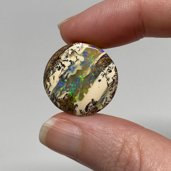 Australian boulder opals of this grade are relatively more common. Typically, they either score well in one or two factors, or are more ‘all-rounders’ scoring well in multiple factors. Again, they may have a higher-grade stripe or patch as part of the opal.
