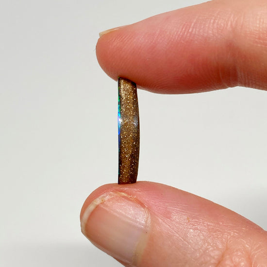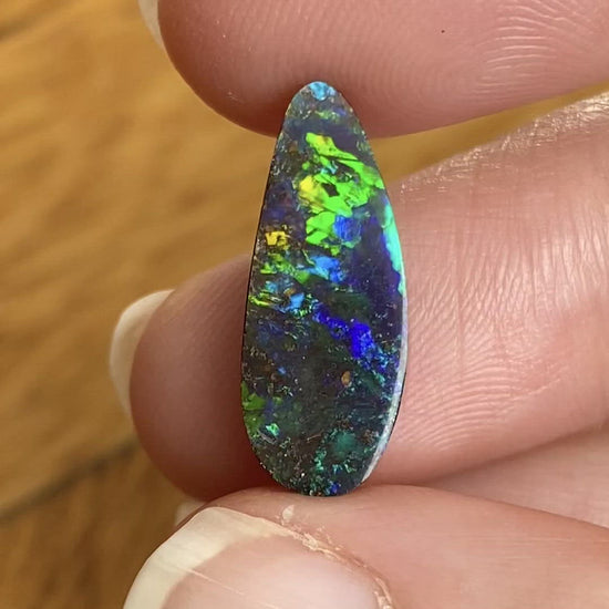 A small free-form boulder opal with fantastic brilliant colors and a black body tone.