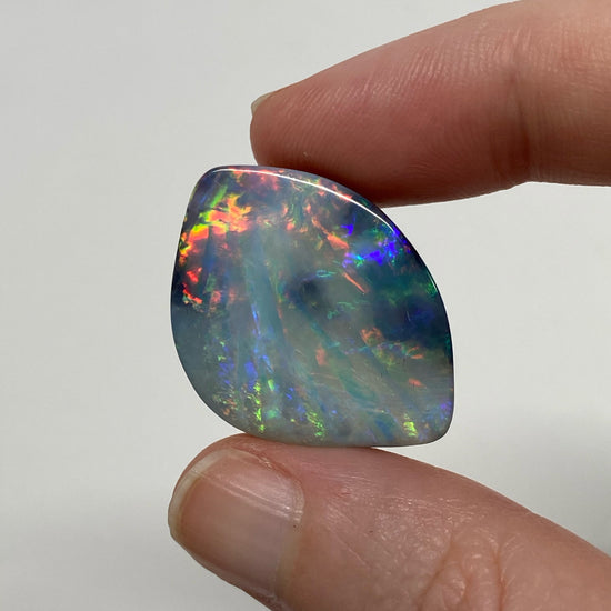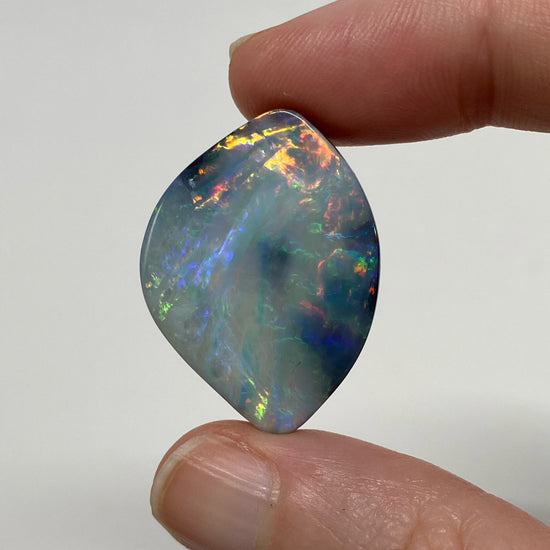 A large free-form oval boulder opal with an extraordinary ribbon pattern.