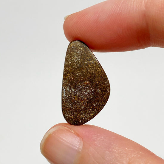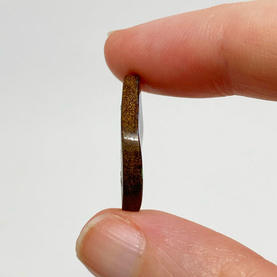 A lovely boulder opal with broad flash, rolling colors and a black body tone.